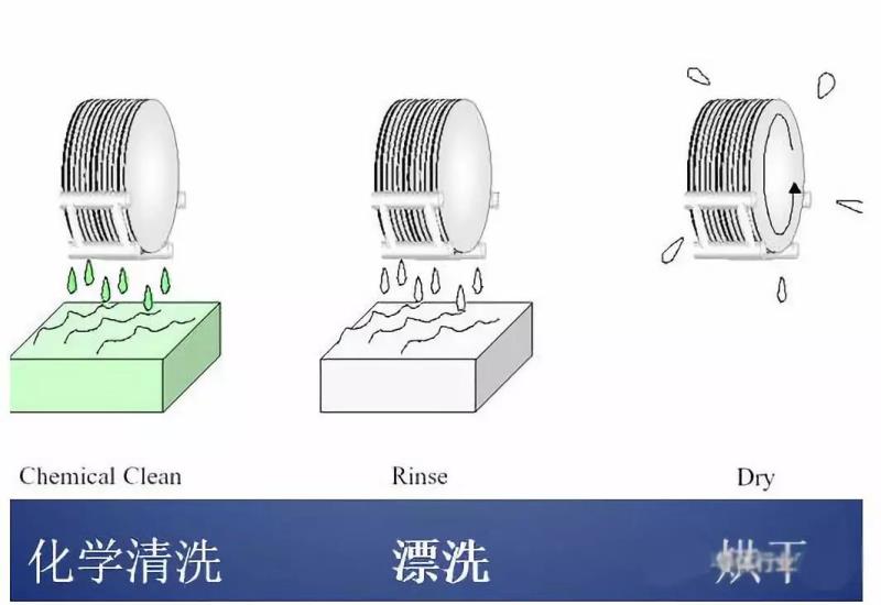 自1970年美国RCA实验室提出的浸泡式RCA化学清洗工艺得到了广泛应用,1978年RCA实验室又推出兆声清洗工艺,近几年来以RCA清洗理论为基础的各种清洗技术不断被开发出来,例如:美国FSI公司推出离心喷淋式化学清洗技术、美国原CFM公司推出的Full-Flow systems封闭式溢流型清洗技术、美国VERTEQ公司推出的介于浸泡与封闭式之间的化学清洗技术(例Goldfinger Mach2清洗系统)、美国SSEC公司的双面檫洗技术(例M3304 DSS清洗系统)、 日本提出无药液的电介离子水清洗技术(用电介超纯离子水清洗)使抛光片表面洁净技术达到了新的水平、以HF / O3为基础的硅片化学清洗技术。